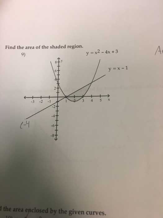 Solved Find The Area Of The Shaded Region Y X2 4x 3 Y X 1 Chegg Com